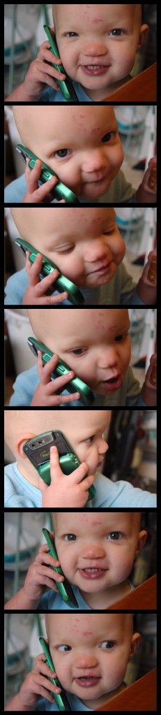 Idea one: find someone who likes to talk - and let the kids call them. Millie ca spend lots of time listening to grandma ramble (um, I mean, talk). Being grandma, she loves talking to the wee one, so it's a win-win situation for everyone, including the freshly cleaned kitchen counters (thanks grandma!).